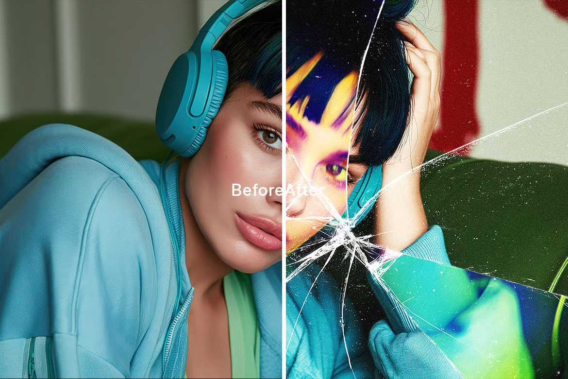 This expansive suite offers a masterclass in digital manipulation, featuring everything from hyper-realistic vector sketches and halftone gradients to sophisticated glass distortions and dreamy film grains.